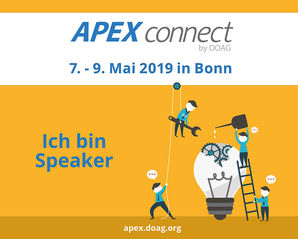 Robert Marz, unser Portfolio Manager Datenbanken, steht bei der APEX Connect am Dienstag, 7. Mai 2019, um 14.00 Uhr als Speaker auf der Bühne.