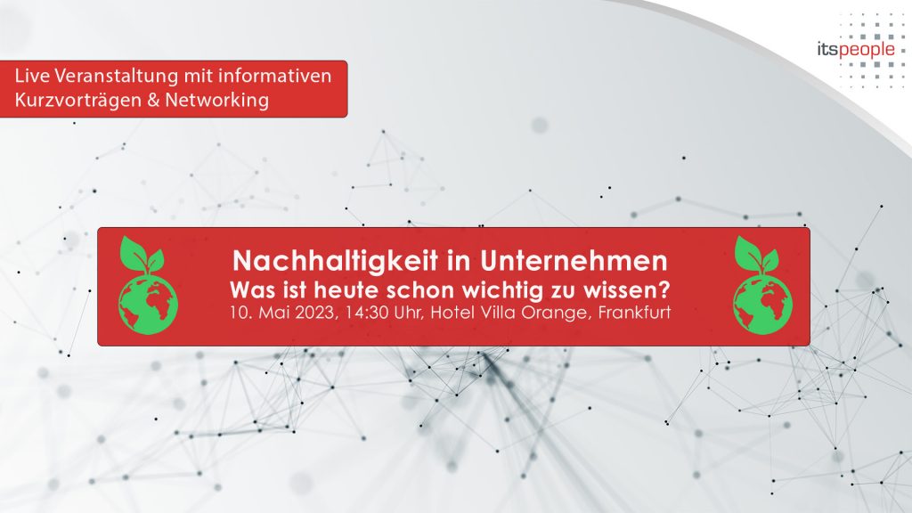 its-people lädt Sie ein, in spannenden 3,5 Stunden, in einem bio-zertifizierten Hotel, mitten in Frankfurt, geballtes Fachwissen in informativen Kurzvorträgen zu den vielfältigen Themen der Nachhaltigkeit mitzunehmen.